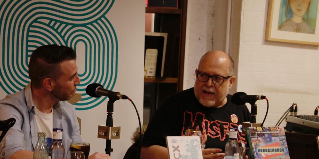 Comenzó la charla Jesús Palacios explicando que la génesis del libro es el documental del mismo título, dirigido también por José Fernández en 2017. En dicho documental se hacía un repaso por la historia del fenómeno del videoclub, incluyendo numerosas entrevistas a los protagonistas del llamado “Cine de videoclub”. El libro surge con posterioridad “como una necesidad de poder añadir en él gran parte de lo que no se pudo incluir en el documental, como las portadas de las cintas de video (tan míticas en su época) o algunas de las entrevistas y anécdotas que, por falta de espacio, quedaron fuera del documental”.